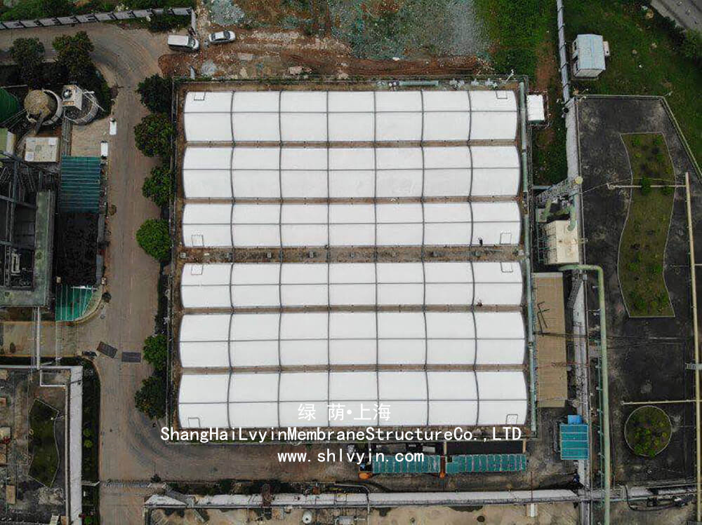 工業污水處理加蓋 污水反吊膜優勢密封性強:密封性強,膜材搭接均采用熱熔焊接,膜材接縫嚴密,以保證每片膜材都是一個整體。吊膜罩棚單獨設計成型:造型多樣,美觀新穎,每個反吊膜罩棚都可單獨設計成型,設計造型選擇多樣,管桁架結構搭配膜布使用觀感十足。跨度大:空間管桁架結構的骨架可根據各種池體進行設計,適用于任何跨度。更能滿足陽光板、玻璃鋼等加蓋無法克服的大跨度問題。易維護:檢修方便,反吊膜罩棚在現場安裝完成后,可根據不同的設備開設檢修口,預留門洞,方便污水池中各種設備的定期維護和檢查。 上一篇:廈門污水處理膜加蓋 下一篇:充氣膜結構 常山氣膜體育館 充氣膜結構 氣膜 污水池反吊膜