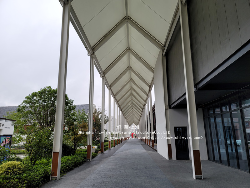 位于寧波文創(chuàng)港規(guī)劃運河區(qū),架起了一處膜結(jié)構(gòu)長廊,采用進口PTFE膜材: