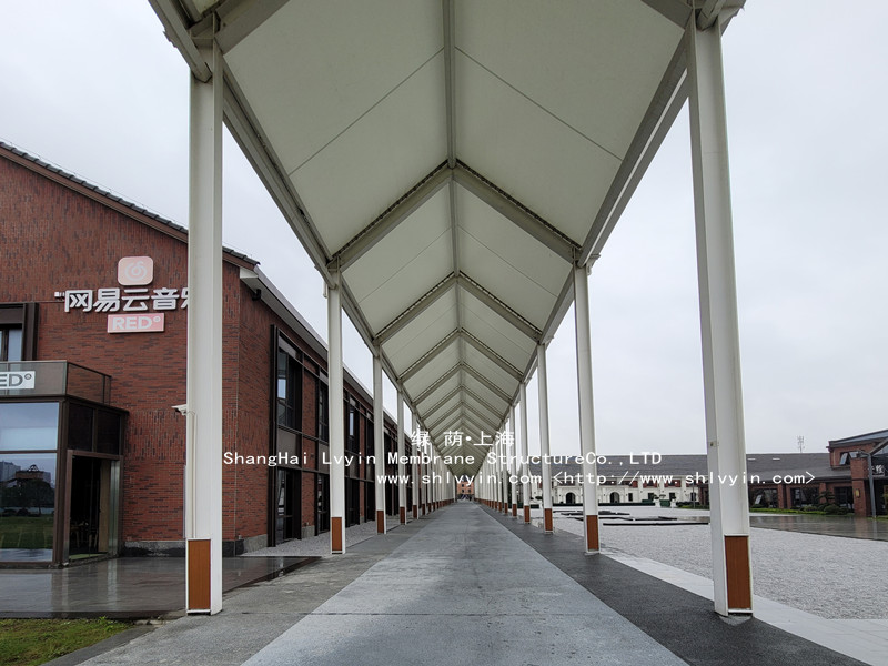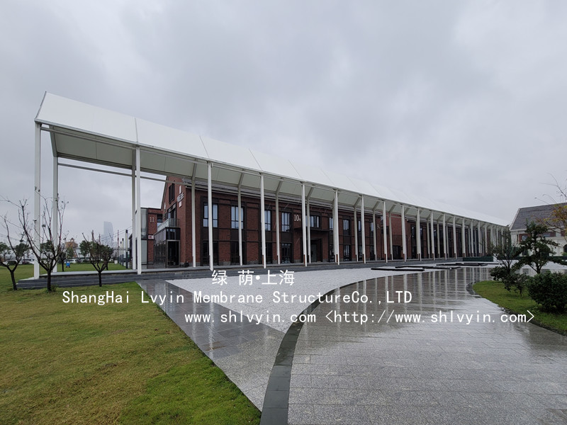 位于寧波文創(chuàng)港規(guī)劃運(yùn)河區(qū),架起了一處膜結(jié)構(gòu)長(zhǎng)廊,采用進(jìn)口PTFE膜材: